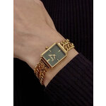 Эти часы предлагают аналоговый способ отображения времени и выполнены в модном прямоугольном корпусе, который излучает изысканность. Золотистый цвет корпуса и браслета из нержавеющей стали подчеркивает их утонченный стиль, а зеленый циферблат добавляет яркости и оригинальности вашему образу.