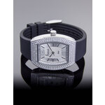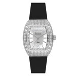 Часы выполнены в бочкообразной форме с корпусом из нержавеющей стали, окрашенным в хром, что придаёт им уникальный и утончённый вид. Серебристый циферблат прекрасно контрастирует с чёрным силиконовым браслетом, создавая стильный и гармоничный образ. Комбинированная индикация времени в сочетании со стразами добавляет нотку роскоши и индивидуальности, что делает эти часы не только практичными, но и настоящим аксессуаром.