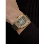 Ремешок из прочного силикона в ярком зеленом цвете гармонично сочетается с золотистым корпусом часов, а его длина 180 мм и ширина 20 мм обеспечивают комфортную посадку на запястье. Декорированные стразами, эти часы станут не только практичным, но и роскошным дополнением к вашему образу.