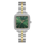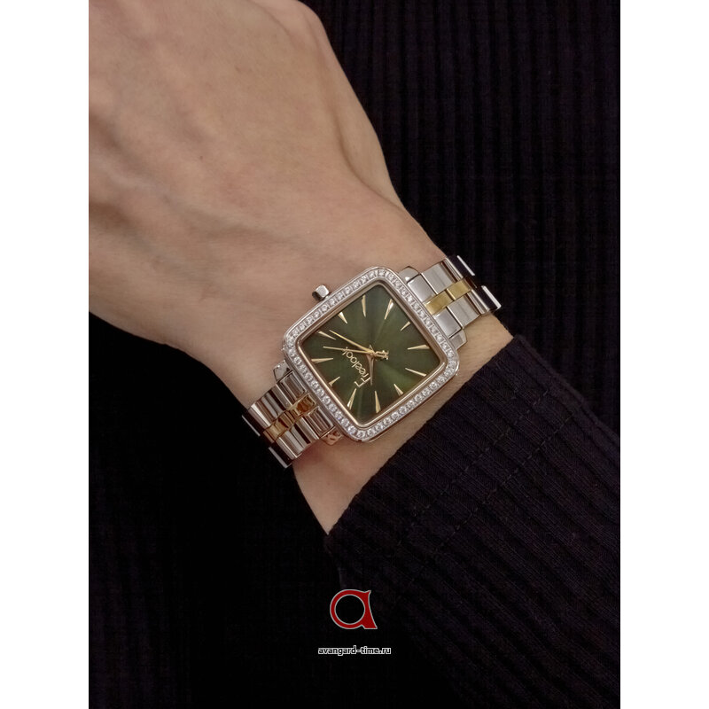 С квадратной формой и хромированным корпусом, выполненным из нержавеющей стали, модель привлекает внимание своим ярким зеленым циферблатом, который прекрасно контрастирует со стразами, придающими часам особый шарм и изящество. Способ отображения времени – аналоговый, а тип индикации – отметки, что обеспечивает лёгкость в восприятии информации.