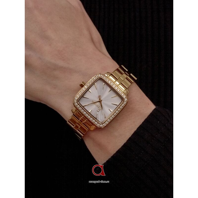 Часы выполнены из высококачественной нержавеющей стали, что гарантирует их долговечность и износостойкость. Золотистый браслет не только великолепно выглядит, но и удобно сидит на запястье благодаря длине 175 мм и ширине 14 мм. Индикация времени на счёт отмеченных точек позволяет легко и быстро считывать время. Вдобавок, стразы на циферблате добавляют блеска и шика, делая этот аксессуар настоящей находкой для модниц.