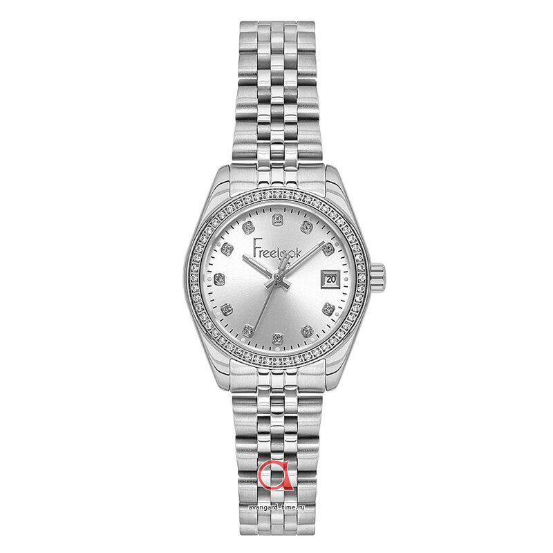 Часы Freelook имеют круглый корпус из нержавеющей стали, сияющий хромированный цвет которого привлекает внимание и делает аксессуар универсальным для любого стиля. Серебристый циферблат с изящными отметками и яркими стразами добавляет роскоши и утонченности, создавая эффектный образ.