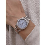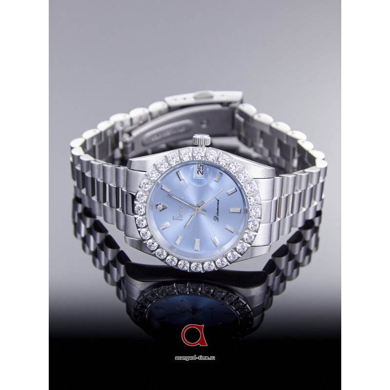 Корпус из высококачественной нержавеющей стали в стильном хромированном исполнении придает часам прочность и долговечность, а изящный серебристый браслет обеспечивает комфорт при ношении. Голубой циферблат с изысканными стразы создает восхитительный контраст, подчеркивая вашу индивидуальность и вкус. Часы оснащены минеральным стеклом, обеспечивающим надежную защиту от повреждений.