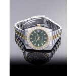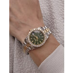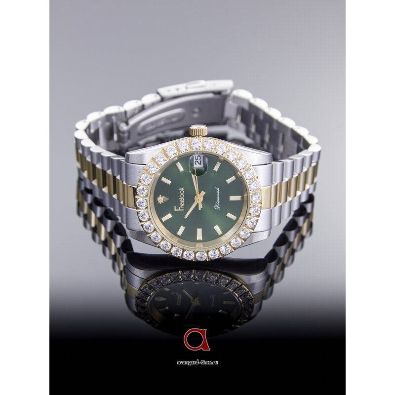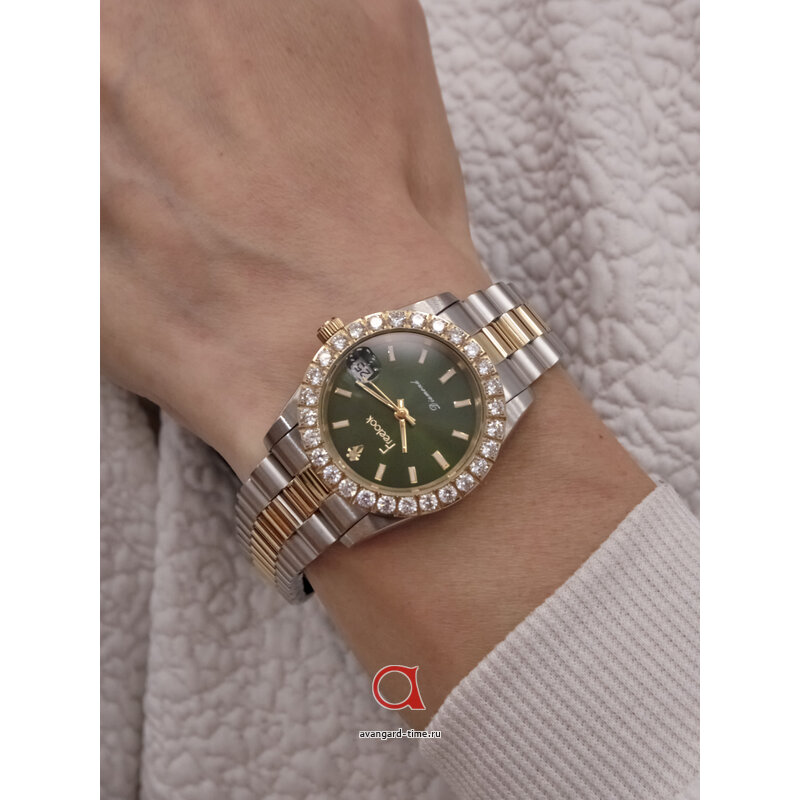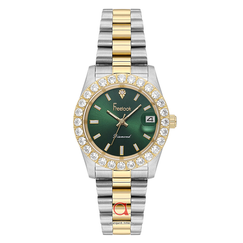 Часы имеют аналоговый способ отображения времени и стильный хромированный корпус, выполненный из нержавеющей стали. Серебристый ремешок полностью соответствует общей эстетике, добавляя изысканности вашему образу. Привлекательный зеленый циферблат с индикацией в виде отметок и сверкающими стразами создает эффектный акцент, который невозможно не заметить.