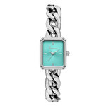 Часы имеют прямоугольную форму, которая подчеркивает их уникальность и изысканность. Корпус и браслет выполнены из нержавеющей стали, покрытой хромом, что обеспечивает им долговечность и устойчивость к повреждениям. Бирюзовый циферблат добавляет ярких красок и свежести, делая акцент на вашем индивидуальном стиле.