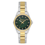 Часы выполнены в круглом корпусе из нержавеющей стали с хромированным покрытием, что придает им исключительный блеск и прочность. Золотистый ремешок из нержавеющей стали добавляет роскоши, а зеленый циферблат с очаровательными стразы делает акцент на вашей индивидуальности. Классическая индикация времени в виде отметок позволяет легко и быстро считывать время, удобно и стильно.