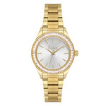 С их круглыми золотистыми корпусом и браслетом из высококачественной нержавеющей стали, этот аксессуар не только привлекает внимание, но и дарит комфорт и долговечность в использовании. Серебристый циферблат с изящными отметками и эффектными стразами создает яркую и стильную композицию, которая восхитит даже самых требовательных модниц.