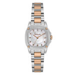 Корпус и ремешок часов выполнены из нержавеющей стали, что делает их прочными и долговечными. Ремешок в нежном цвете розового золота гармонично сочетается с перламутровым циферблатом, создавая элегантный контраст. Минеральное стекло защищает часы от повреждений и придаёт им ещё больше изящества.