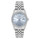 Корпус из качественной нержавеющей стали в хромированном цвете сочетается с серебристым браслетом, создавая утонченный и стильный вид. Голубой циферблат с яркими стразами не только привлекает внимание, но и прекрасно читается благодаря индикации в виде отметок. Такой стильный акцент отлично подчеркнет вашу индивидуальность и обеспечит максимальный комфорт при ношении.