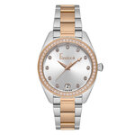 Изготовленные из нержавеющей стали, корпус и браслет этих часов становятся не только прочными, но и невероятно стильными. Розовое золото браслета придает часам изысканный вид, который идеально сочетается с серебристым циферблатом, украшенным сверкающими стразами. Таким образом, каждая деталь этих часов говорит о высоком качестве и внимании к мелочам.