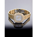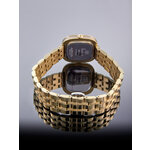 Корпус из нержавеющей стали золотистого цвета не только впечатляет своим блеском, но и обеспечивает долговечность и надежность. Широкий ремешок, выполненный из того же материала, словно обнимает запястье, а серебристый циферблат с яркими отметками и стильными стразами придает часам неповторимый шарм. Каждый элемент был продуман до мелочей, чтобы подчеркнуть модный стиль, благодаря чему они идеально впишутся в повседневный и вечерний образ.