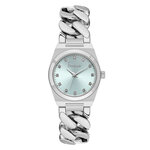 Корпус в хромированном цвете, выполненный из нержавеющей стали, гарантирует не только стильный внешний вид, но и долговечность. Круглая форма добавляет элегантности, а голубой циферблат с индикацией в виде отметок привлекает внимание и облегчает чтение времени. В дополнение к этому, часы декорированы изысканными стразами, придающими блеск и чувственность вашему наряду.