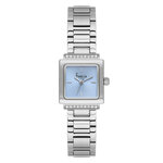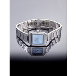 Корпус часов выполнен из нержавеющей стали с элегантным хромированным покрытием, что гарантирует долговечность и устойчивость к внешним воздействиям. Уникальный голубой циферблат с стильными отметками и украшением из страз добавляет нотку роскоши, делая часы замечательным аксессуаром для любой женщины, ценящей моду и качество.