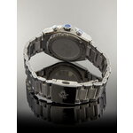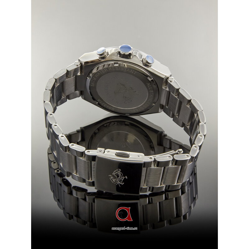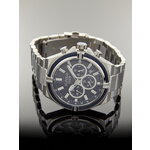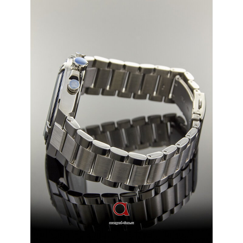 Корпус часов выполнен из нержавеющей стали с хромированным покрытием, что гарантирует долговечность и устойчивость к повреждениям. Серебристый браслет из того же высококачественного материала подчеркивает их статусность и подходит для любого наряда — от делового до повседневного. Циферблат глубокого синего цвета с действующими дополнительными циферблатами и отметками делает время четким и легко читаемым.