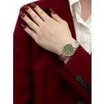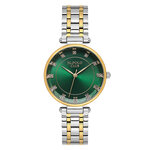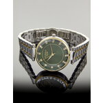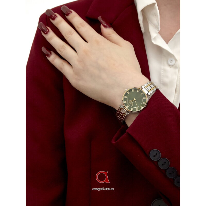 Сочетание хромированного корпуса и браслета из нержавеющей стали придает этим часам изысканный вид, а зеленый циферблат с яркими отметками и стразы добавляют нотки роскоши и индивидуальности. Круглая форма и четкая индикация времени создают гармоничный и лаконичный дизайн, который идеально подходит для модных решений в вашей гардеробе.