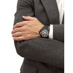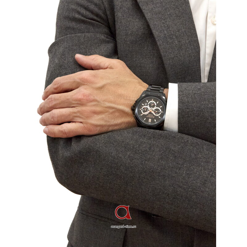 Корпус черного цвета, выполненный из нержавеющей стали, сочетает в себе прочность и утонченный дизайн. Круглая форма и стильный черный циферблат делают часы универсальными, подходящими как для деловых встреч, так и для повседневной носки. Добавленная подсветка обеспечивает отличную видимость в условиях недостаточного освещения, а действующие дополнительные циферблаты добавляют функциональности.
