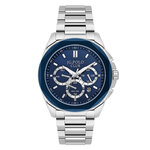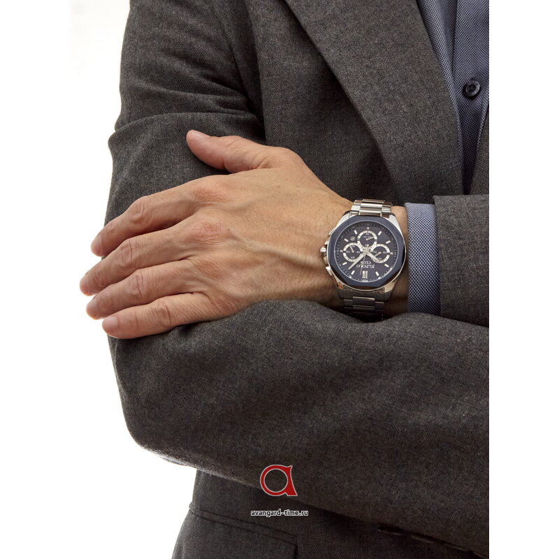 Аналоговое отображение времени с синим циферблатом и отметками гарантирует отличную читаемость. Дополнительные действующие циферблаты, календарь и возможность установки второго часового пояса делают эти часы практичным аксессуаром для деловых встреч и путешествий.