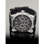 Стильный круглый корпус из нержавеющей стали в хромированном цвете гармонично сочетается с черным силиконовым браслетом, который имеет ширину 26 мм и длину 195 мм. Благодаря использованию высококачественных материалов, часы обеспечивают долговечность и комфорт в носке. Спортивный стиль делает их идеальным аксессуаром как для тренировок, так и для повседневной жизни.