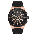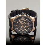 Сочетание аналогового отображения времени с черным циферблатом и розово-золотым корпусом из нержавеющей стали создает уникальный визуальный эффект, который привлечет внимание окружающих. Элегантная круглая форма и стильный спортивный дизайн делают модель универсальной: она отлично подходит как для повседневного ношения, так и для особенных случаев.