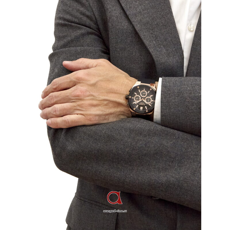 Ремешок из высококачественного силикона в черном цвете обеспечивает комфортную посадку на запястье и позволяет легко регулировать размер благодаря длине 195 мм и ширине 26 мм. Дополнительные циферблаты и календарь увеличивают функциональность, а яркая подсветка помогает считывать время в темноте.