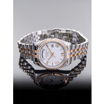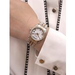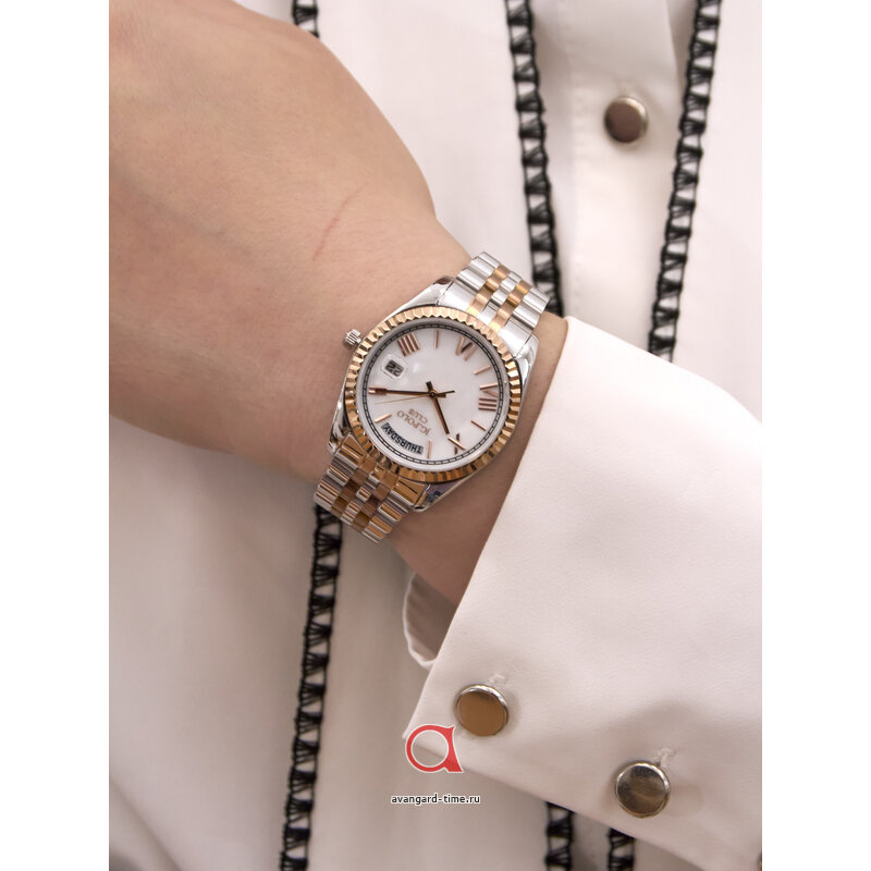 Корпус из нержавеющей стали с хромированным цветом придаёт часовому аксессуару прочность и долговечность, а изящный перламутровый циферблат с комбинированной индикацией создает неповторимый стильный акцент. Этот аксессуар не только точно показывает время, но и акцентирует внимание на вашей индивидуальности.