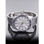 Корпус из нержавеющей стали имеет современный хромированный цвет, что придает часам элегантный и стильный вид. Серебристый циферблат, дополненный четкими отметками и действующими дополнительными циферблатами, делает считывание времени легким и комфортным. Они оснащены подсветкой, что позволяет использовать их в условиях низкой освещенности.