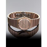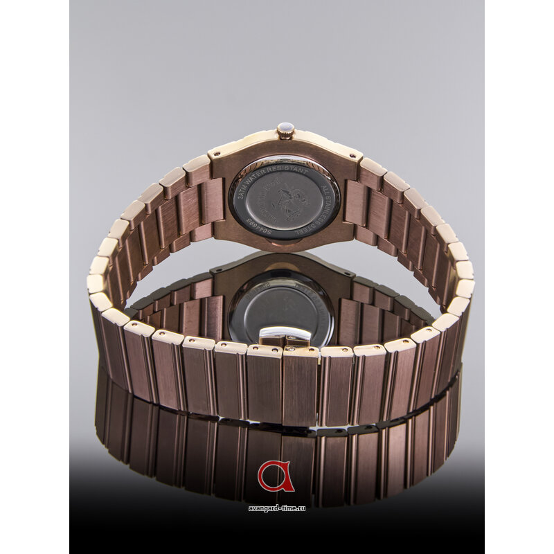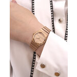 Круглая форма корпуса и циферблата, выполненные в роскошном цвете розового золота, создают элегантный и притягательный вид. Нержавеющая сталь, из которой изготовлены корпус и браслет, гарантирует долговечность и стойкость к повреждениям, а также обеспечивает комфорт при носке. Браслет шириной 20 мм, длиной 170 мм, отлично подчеркивает изящность запястья.