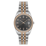 Корпус из нержавеющей стали с хромированным покрытием не только выглядит привлекательно, но и обеспечивает долговечность изделия. Темно-серый циферблат украшен изысканными стразы, которые придают часам дополнительный блеск и шарм. Круглая форма и классическая стильная эстетика делают их универсальным аксессуаром для любого повода.