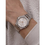 Способ отображения времени — аналоговый, что придает им особый шарм и классический вид. Циферблат и корпус в элегантном серебристом цвете, выполненные из высококачественной нержавеющей стали, создают эффектный визуальный акцент. Минеральное стекло защищает от царапин, сохраняя безупречный внешний вид даже при ежедневном использовании.