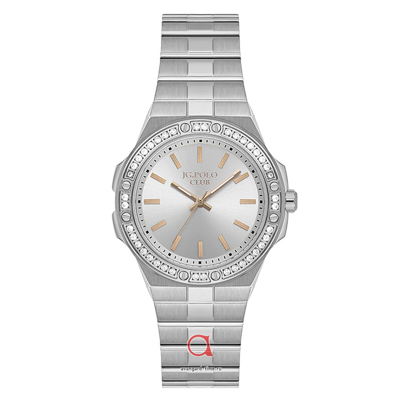 Одной из замечательных особенностей этих часов является подсветка, позволяющая без труда определять время в темноте. Стразы, украшения по кругу циферблата, добавляют изысканности и блеска, превращая каждую деталь в яркий акцент. JG.POLO CLUB уверенно превосходит ожидания в плане стиля и качества. Кварцевый механизм, работающий от батарейки, гарантирует точность хода, а 3 Bar водонепроницаемость защитит ваши любимые часы от влаги в повседневной жизни.