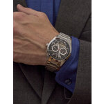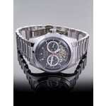 Их круглая форма и хромированный корпус, выполненный из нержавеющей стали, создают впечатляющий внешний вид, а темно-серый циферблат с отметками обеспечивает отличную читаемость времени. Дополнительные циферблаты добавляют часовому аксессуару особую изюминку, делая его не только практичным, но и элегантным.