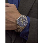 Циферблат насыщенного синего оттенка с отметками обеспечивает легкость восприятия времени, а дополнительные действующие циферблаты добавляют функциональности этим часам. Легкость считывания времени в темноте достигнута благодаря встроенной подсветке, что делает их комфортными в любых условиях.