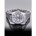 Часы имеют аналоговый способ отображения времени и классический круглый корпус из нержавеющей стали с хромированным покрытием, что придаёт им изысканный вид. Серебристый циферблат с отметками и действующими дополнительными циферблатами обеспечивает лёгкость восприятия времени, а встроенная подсветка позволит вам всегда быть в курсе времени даже в условиях недостаточной освещенности.