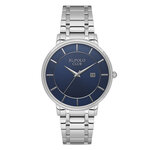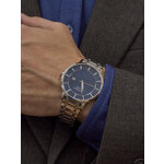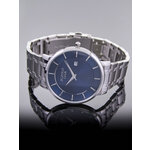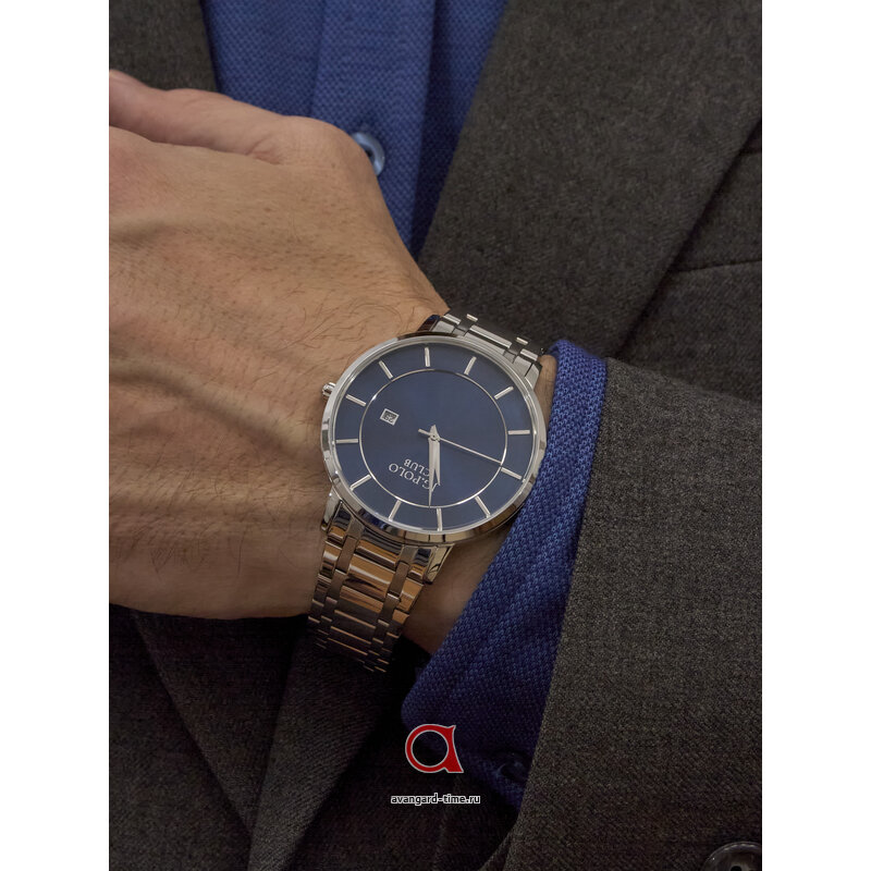 Часы имеют аналоговый способ отображения времени и круглую форму, что подчеркивает их универсальность и подходит для любых случаев — от деловых встреч до торжеств. Корпус выполнен из нержавеющей стали с хромированным покрытием, которое не только придаёт изделию роскошный блеск, но и обеспечивает долговечность. Синий циферблат с четкими отметками создает стильный контраст, позволяя быстро считывать время.
