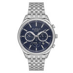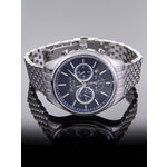 Круглая форма корпуса выполнена из нержавеющей стали с хромированным покрытием, что гарантирует не только долговечность, но и привлекательный внешний вид. Синий циферблат с четкими отметками и дополнительными действующими циферблатами, а также подсветка делают время легко читаемым даже в условиях низкой освещенности.