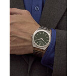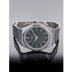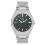 Корпус часов выполнен из нержавеющей стали, что обеспечивает не только долговечность, но и стильный серебристый цвет, идеально подходящий к любому наряду. Конструкция имеет круговую форму, что подчеркивает классический стиль. Венцом оформления является зеленый циферблат, который добавляет нотку изысканности и оригинальности в дизайн. Индикация времени осуществляется с помощью аккуратных отметок, что делает просмотр текущего времени удобным и приятным.