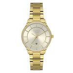 Корпус и браслет выполнены из нержавеющей стали, а их золотистый цвет добавляет изысканности и роскоши в любой образ. Циферблат также золотистого оттенка, что создает гармоничное сочетание с общим дизайном. Часы снабжены отметками для индикации времени и календарем, что обеспечивает дополнительную функциональность.