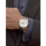 Часы обладают аналоговым способом отображения времени с серебристым циферблатом, который красиво контрастирует с серебристым браслетом из нержавеющей стали. Размеры ремешка (длина 165 мм, ширина 20 мм) обеспечивают комфортную посадку на запястье, а его прочность защищает от случайных повреждений.