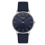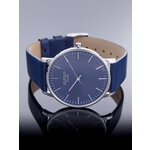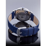 Корпус часов выполнен из нержавеющей стали с элегантным хромированным покрытием, что придаёт изделию современный и стильный вид. Круглая форма циферблата окрашена в глубокий синий цвет, что отлично контрастирует с ярким синим кожаным ремешком, который гарантирует комфортную посадку на запястье длиной 200 мм и шириной 20 мм. Класс водонепроницаемости 5 Bar позволяет вам не беспокоиться о часах в повседневных ситуациях, таком как дождь или при мытье рук.