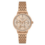 С их аналоговым способом отображения времени вы всегда будете в курсе текущих минут, а стильный круглый корпус из нержавеющей стали цвета розового золота добавит вашему запястью шика. Циферблат, также выполненный в цвете розового золота, украшен сверкающими стразами, которые придают часам уникальность и очарование. Дополнительные действующие циферблаты и функция календаря делают данную модель не только красивой, но и функциональной, обеспечивая удобство в использовании.