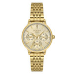 Часы имеют круглый корпус из нержавеющей стали, который сверкает ярким золотистым цветом, подчеркивая ваше чувство стиля и уверенность. Золотистый циферблат и браслет гармонично дополняют друг друга, образуя роскошный комплект, который будет привлекать восторженные взгляды. Добавленные стразы на циферблате добавляют блеска и изысканности, делая эти часы настоящим произведением искусства.