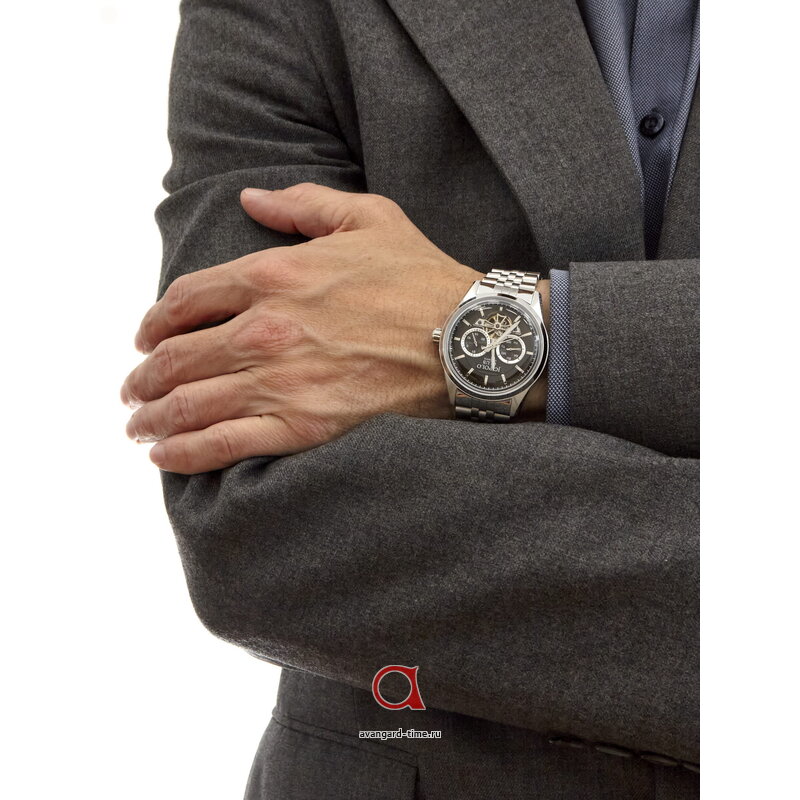 С элегантным круглым корпусом из нержавеющей стали с хромированным покрытием и черным циферблатом, эти часы выглядят стильно и гармонично. Аналоговое отображение времени, дополненное дополнительными циферблатами, позволяет легко следить за временем, а отметки на циферблате делают чтение времени еще более удобным.