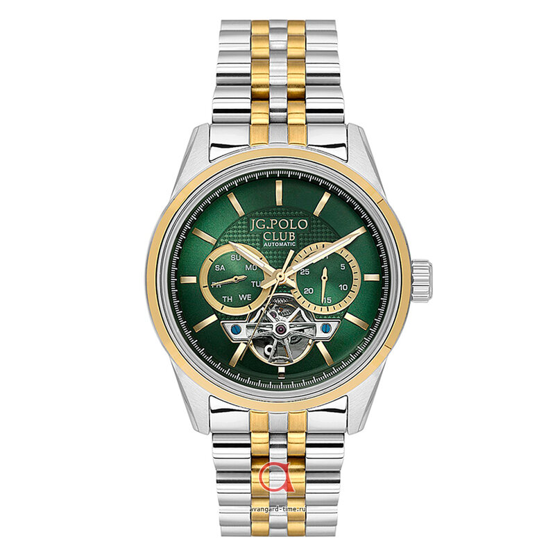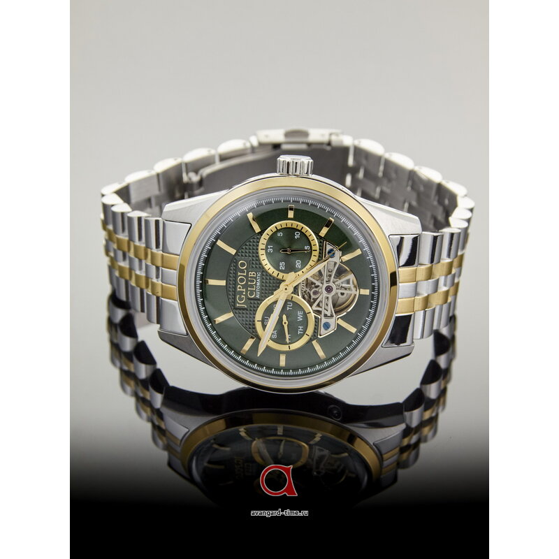 Характеризуясь хромированным корпусом и браслетом из нержавеющей стали, модель JG.POLO CLUB предоставляет не только превосходный внешний вид, но и надежность. Зеленый циферблат с четкими отметками и действующими дополнительными циферблатами добавляет оригинальности и облегчает считывание времени. Практичная подсветка позволит вам легко ориентироваться в темноте.