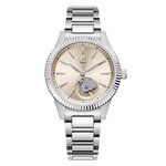 Часы оснащены пружинным механизмом и функцией автоподзавода, обеспечивая точность и надежность работы. Сапфировое стекло защитит циферблат от царапин, сохраняя идеальный вид на долгие годы.