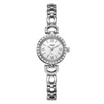 Часы имеют классическую круглую форму и выполнены из нержавеющей стали, что обеспечивает им прочность и долговечность. Хромированный корпус и браслет великолепно сочетаются с перламутровым циферблатом, создавая эффект блеска, который привлекает внимание. Для дополнительного шика и изящества на циферблате установлены стразы, украшающие часы и добавляющие им уникальности.