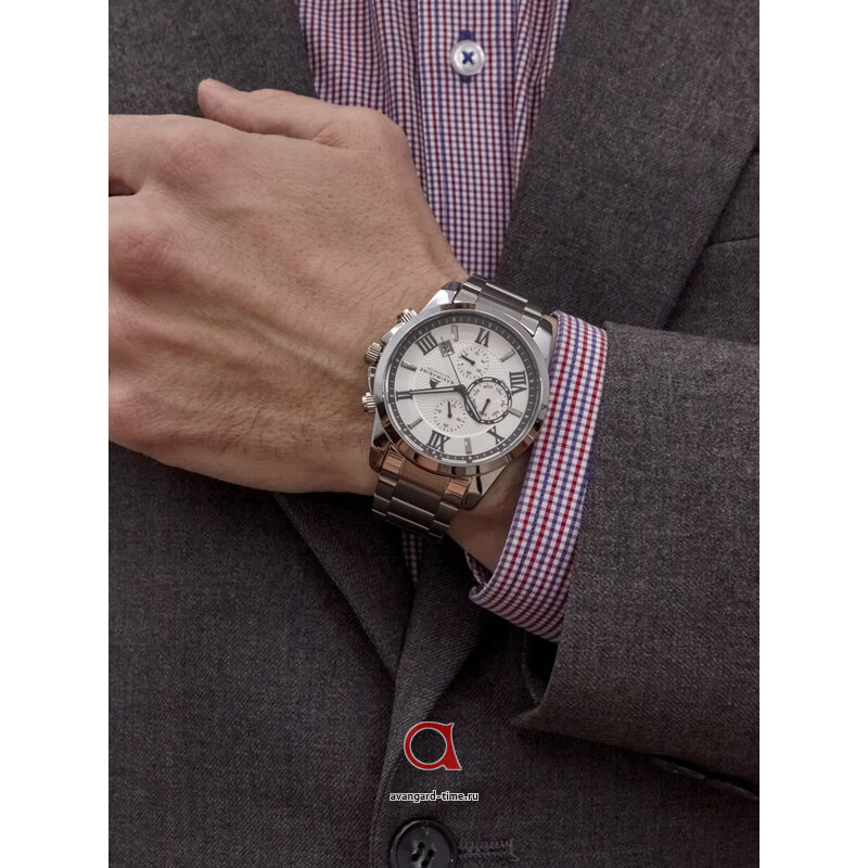 С их элегантным круглый корпусом, выполненным из прочного хромированного сплава, и стильным серебристым браслетом из нержавеющей стали, они станут не только практичным аксессуаром, но и настоящим украшением вашего запястья. Аналоговый дисплей с комбинированной индикацией и дополнительными действующими циферблатами предоставляет вам полный набор функций, включая календарь и второй часовой пояс, что делает эти часы идеальными для путешествий и деловых встреч.