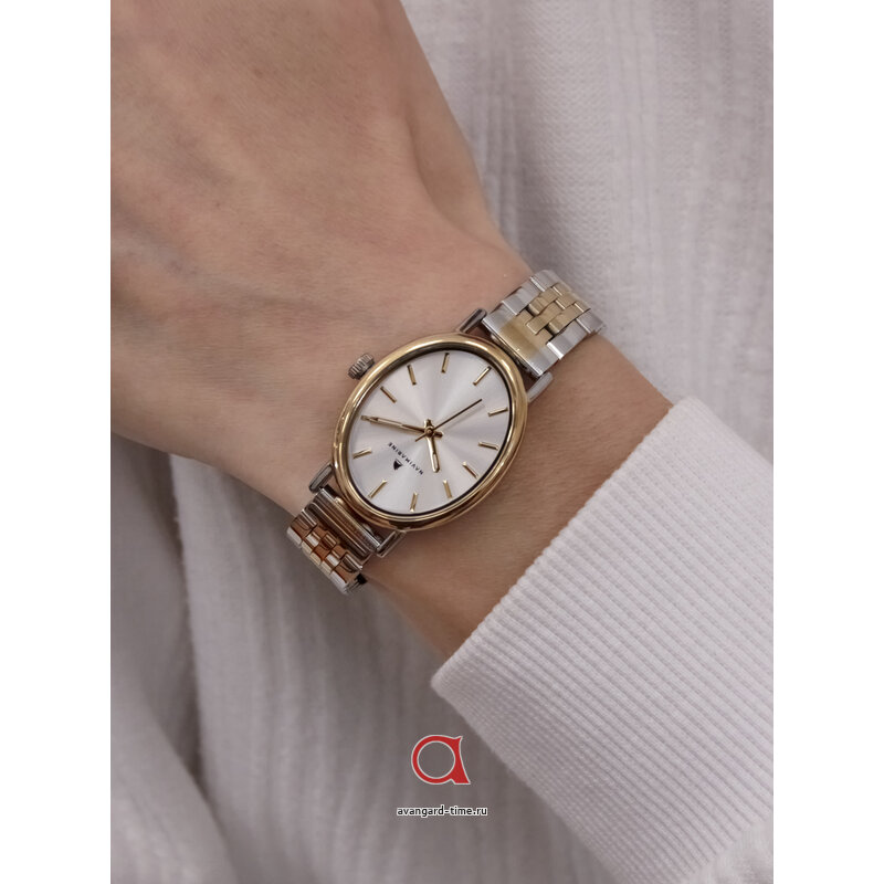 Согласно современным модным тенденциям, часы выполнены в элегантном овальном корпусе хромового цвета, который придаёт изделию неповторимый шарм. Золотистый ремешок из нержавеющей стали не только надежен, но и добавляет роскоши, сочетаясь с серебристым циферблатом. Это идеальный аксессуар для тех, кто ценит стиль и комфорт.