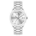 Их стильный круглый корпус, выполненный в элегантном хроме, создаёт изысканный ансамбль с браслетом из нержавеющей стали того же цвета, что обеспечивает как надежность, так и комфорт в носке. Серебристый циферблат с изящными отметками и блестящими стразами добавляет часы роскоши и шика, делая их не только аксессуаром, но и настоящим произведением искусства.