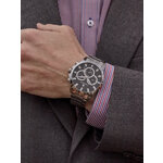 Ремешок из нержавеющей стали в хромовом цвете не только отличается прочностью, но и дарит комфорт при ношении благодаря длине 180 мм и ширине 22 мм. Эти часы оборудованы функцией календаря и возможностью установки второго часового пояса — идеальное решение для деловых поездок и путешествий.