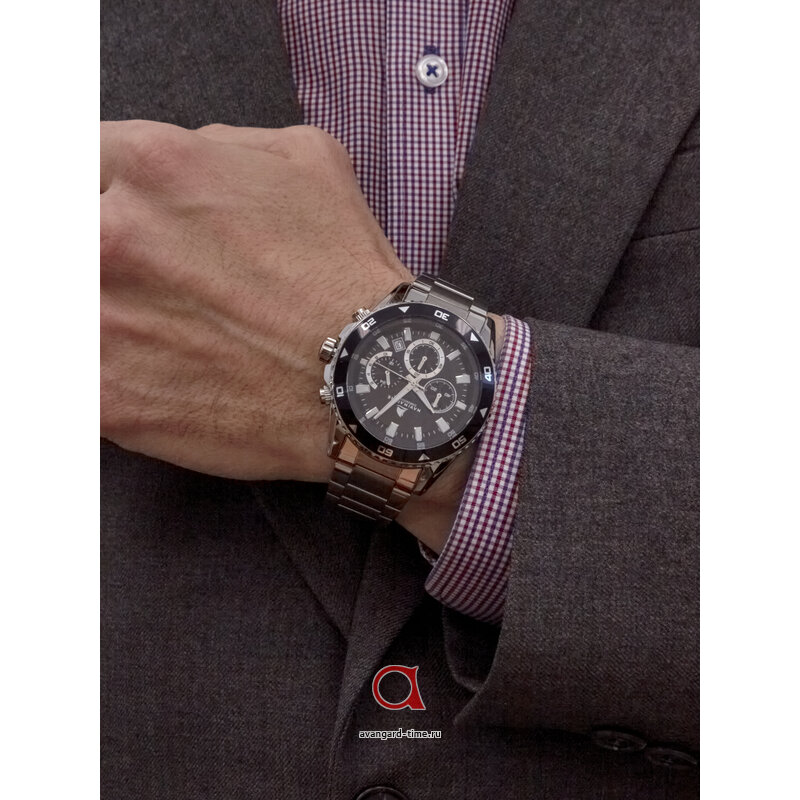 Корпус часов выполнен из хромированного сплава, придающего им стильный вид, а черный циферблат с удобными отметками позволяет легко считывать время в любых условиях. Часы комплектуются надежным браслетом из нержавеющей стали серебристого цвета, который обеспечивает комфорт при ношении и долговечность.